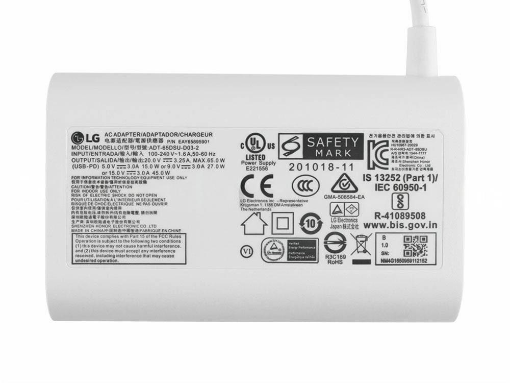 Original 65W USB-C Adaptador LG Gram 14 14Z90T-G.AA7LB Cargador + Cable
